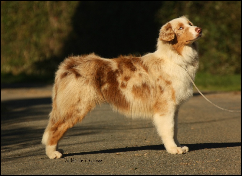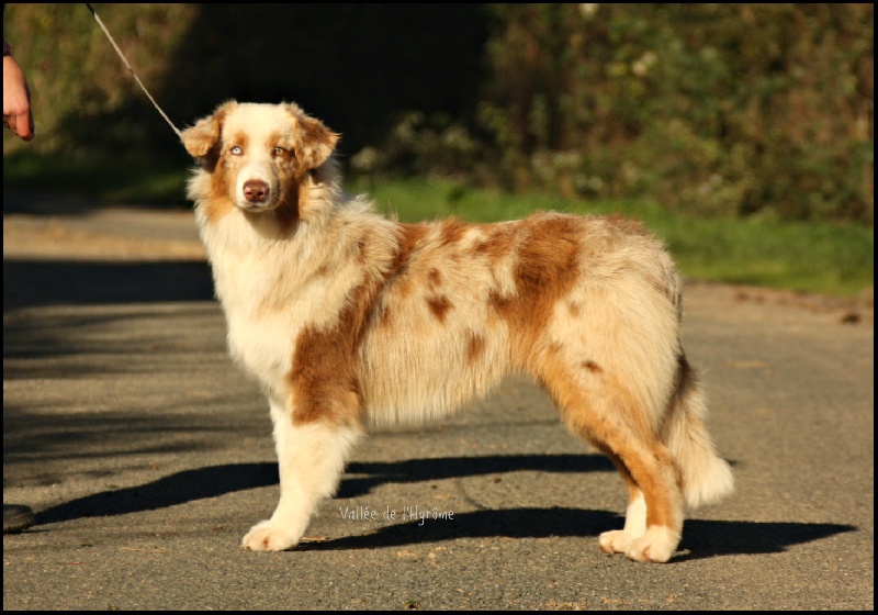 Rouge merle les yeux bleus particolore, queue longue