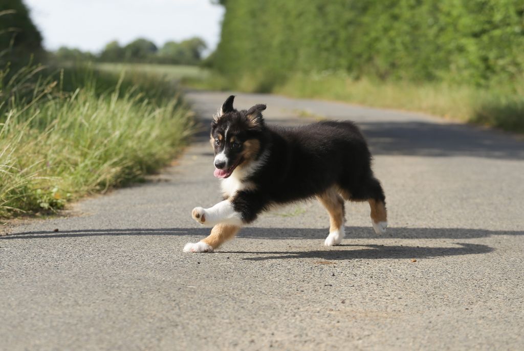 noire tricolore queue longue, femelle assez calme et douce, pour compagnie/sport