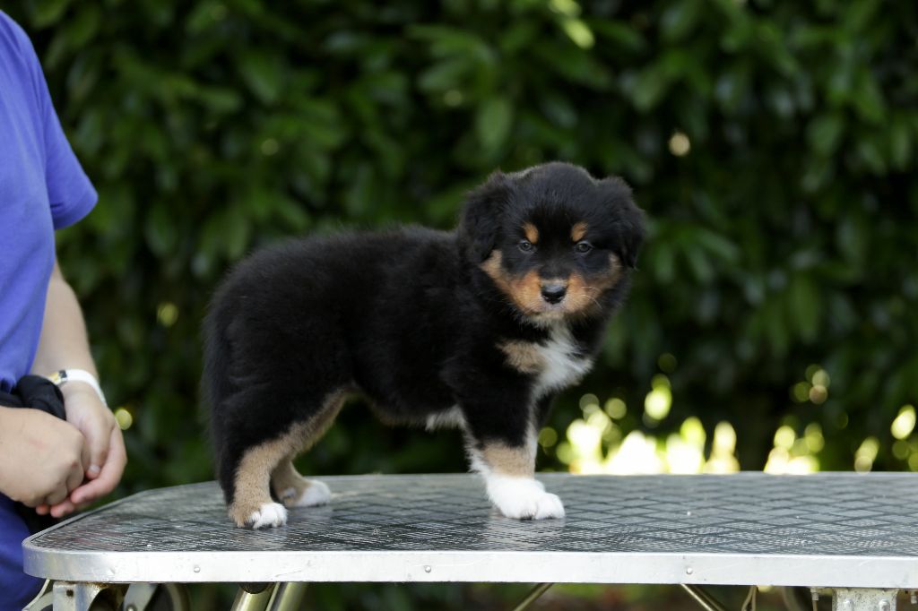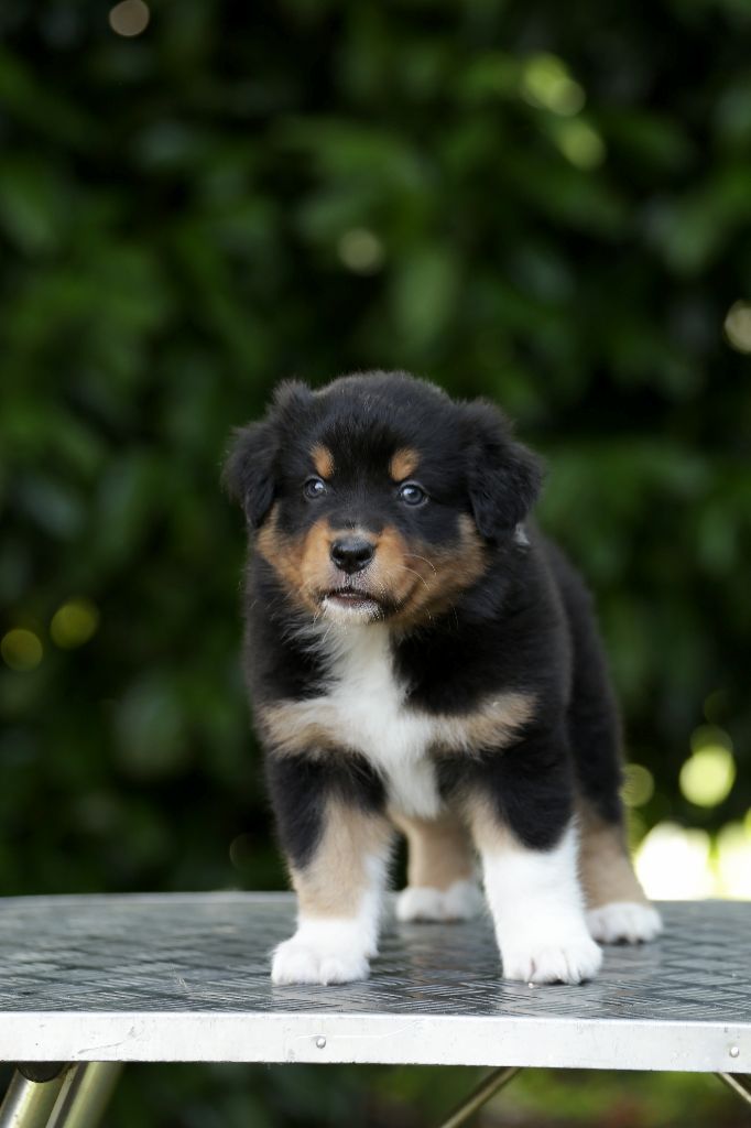 Femelle noire tricolore queue longue. Opium est une petite femelle très active, elle n'a pas froid aux yeux, elle est très sociable, elle marche en laisse et connait son nom.